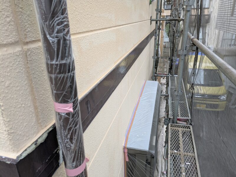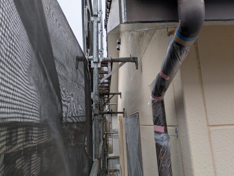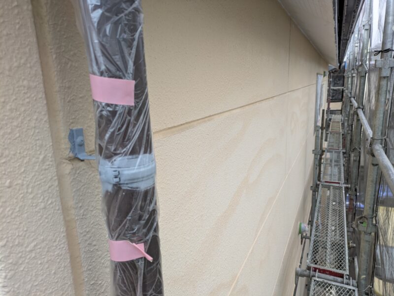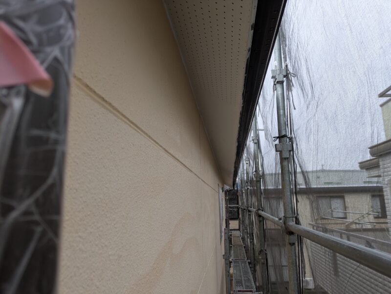 本日は養生→外壁下塗り→シーラー塗装→軒天塗装と各作業でした。