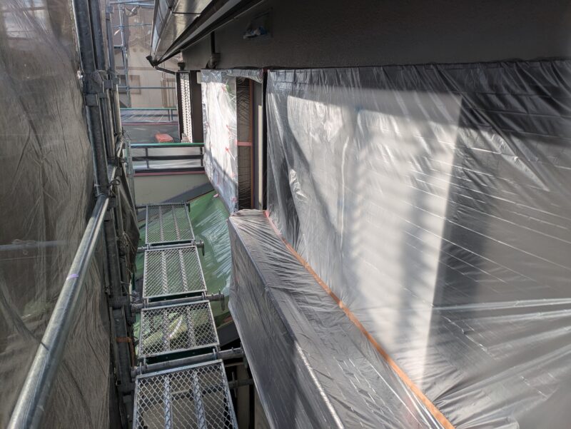 本日は風も強く養生を施工するには余計に手間が掛かります。