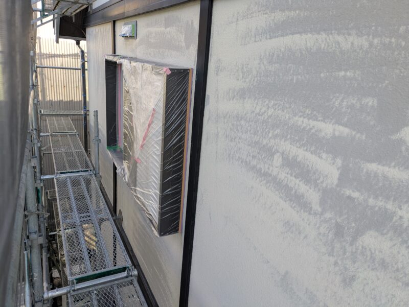 昨日の続き北・西面の養生を行い、下塗りをし、また養生と忙しい1日でした。