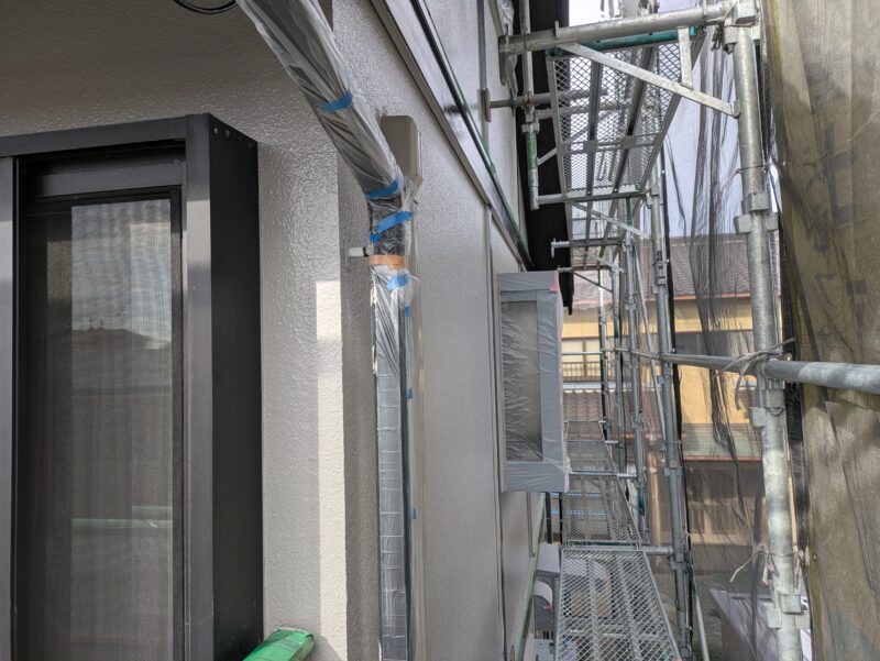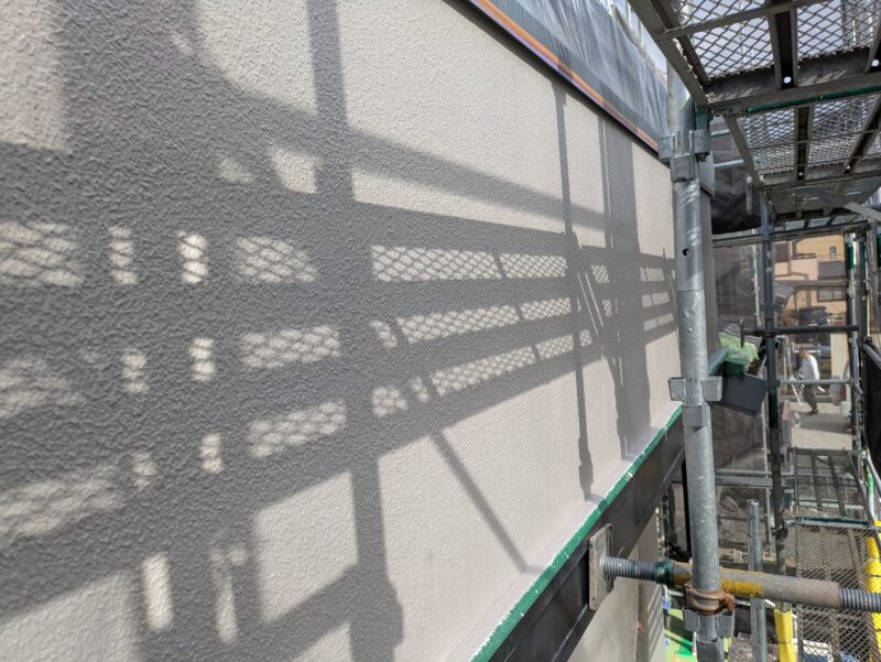 本日は東・南面の外壁上塗り塗装を行いました。